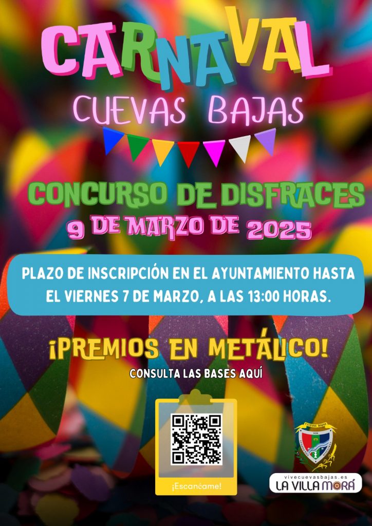 Cuevas Bajas espera la llegada de una de las festividades con más tradición como es el Carnaval. Su celebración se llevará a cabo el domingo 9 de marzo con un concurso de disfraces en el que los ganadores del certamen obtendrán premios en metálico.
