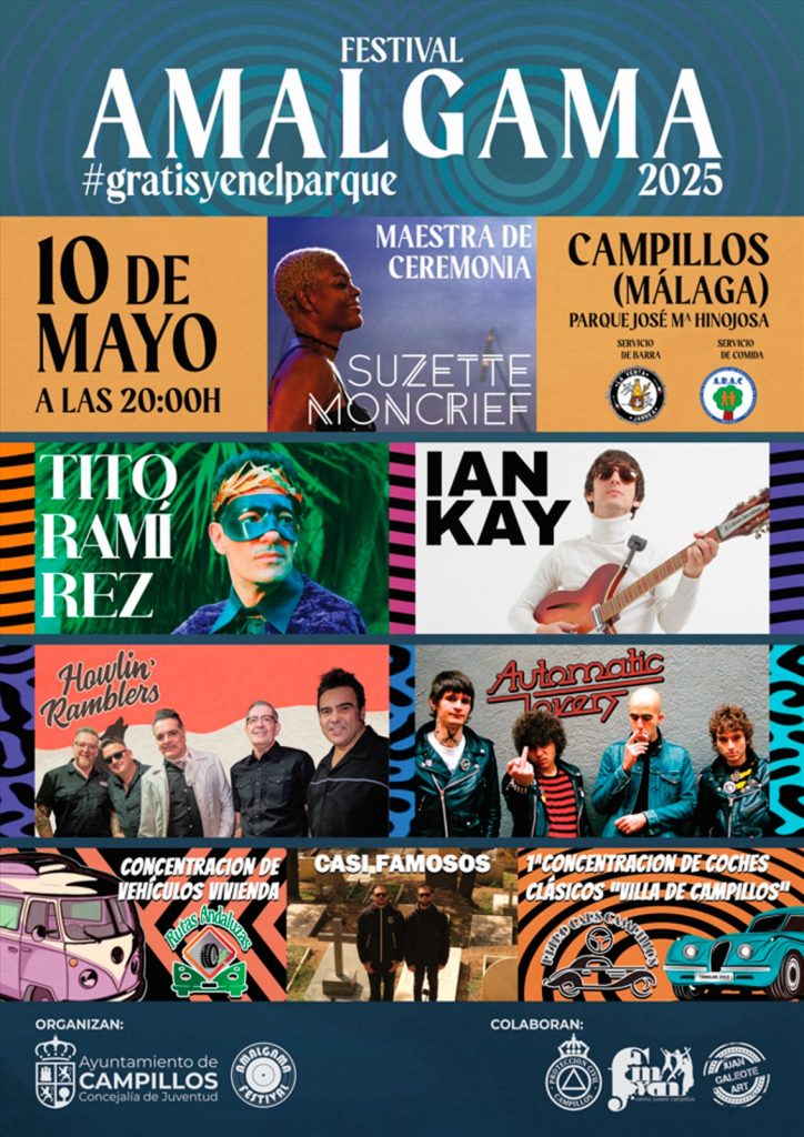 El Ayuntamiento de Campillos y la Asociación Amalgama organizan una nueva edición del Festival  Amalgama, que se celebrará en el Parque José María Hinojosa de la localidad el próximo 10 de  mayo. Cinco grupos inundarán de música el céntrico parque campillero y darán voz a un evento  que cuenta, además, con un amplio programa paralelo para disfrute de la ciudadanía de Campillos  y de otros municipios cercanos.