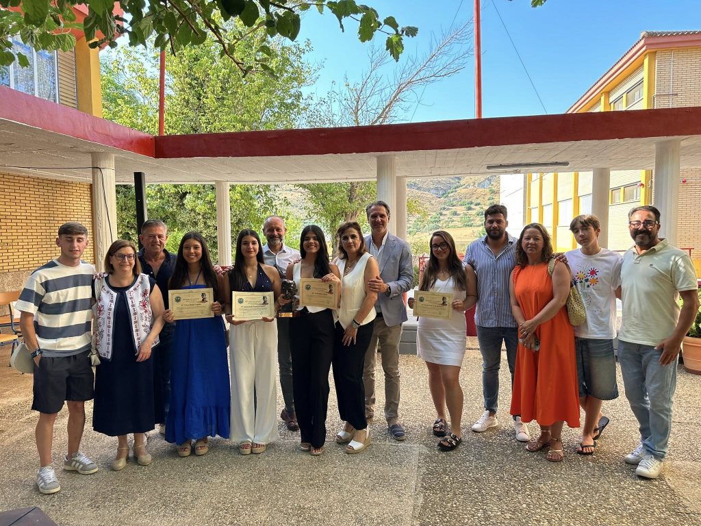 Ayer por la mañana, el alcalde de Mollina, Eugenio Sevillano, junto al concejal de Juventud, Francisco Almohalla, y el director del IES Las Viñas, José Pacheco, acompañaron a cuatro jóvenes del municipio reconocidas por sus sobresalientes expedientes académicos en un emotivo acto celebrado en el IES José María Fernández, en Antequera.