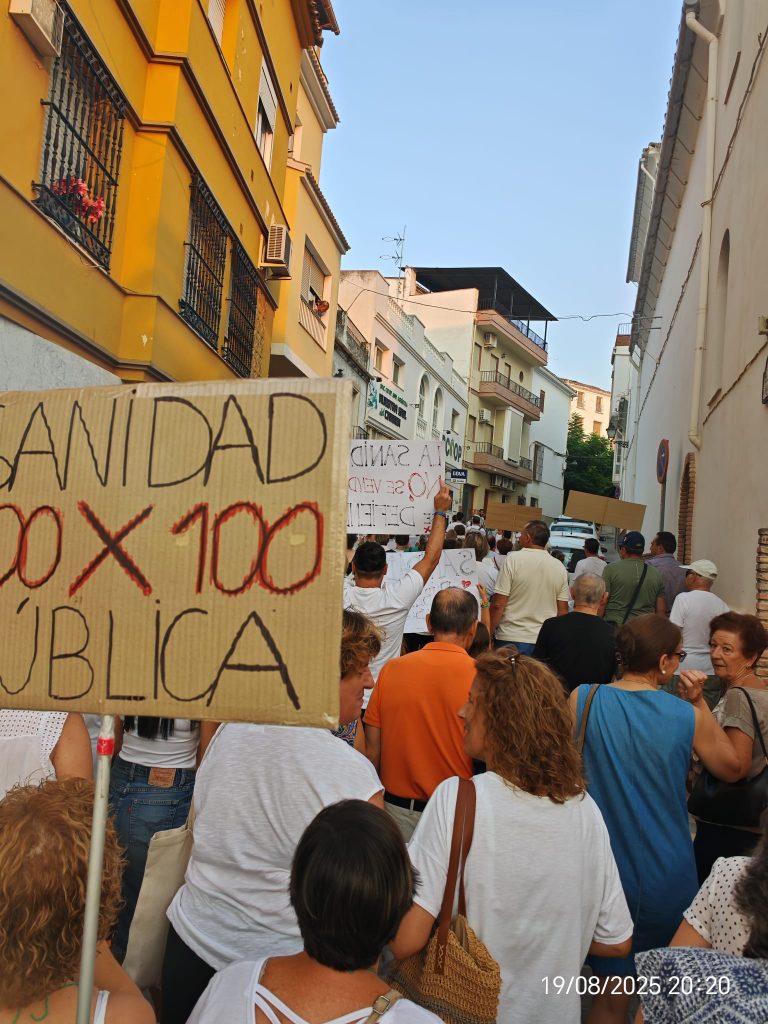 La Plaza García Lorca de Cuevas de San Marcos se llenó ayer martes 19 de agosto a las 20:00 horas en una multitudinaria manifestación convocada por la Plataforma en Defensa de la Sanidad Pública Marea Blanca, donde vecinos, colectivos y profesionales denunciaron el progresivo deterioro del sistema sanitario andaluz y reclamaron medidas urgentes para garantizar una atención de calidad.