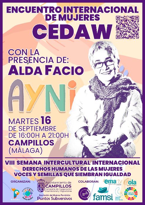 Campillos acogerá el próximo 16 de septiembre un Encuentro Internacional de Mujeres en el salón de exposiciones del Ayuntamiento, un acto que servirá como cierre del Itinerario de Empoderamiento Feminista y que contará con la participación de la reconocida jurista y escritora feminista Alda Facio, dentro de la VIII Semana Intercultural Internacional “AYNI”.