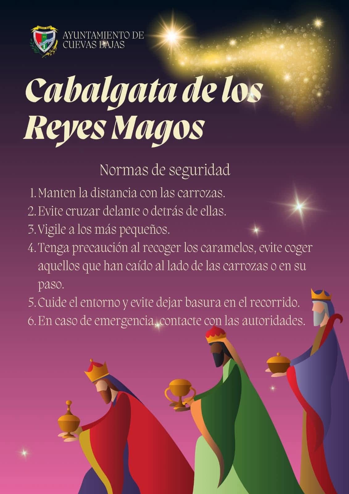 La tradicional Cabalgata de Reyes Magos de Cuevas Bajas cambia de fecha debido a las previsiones meteorológicas adversas previstas para la tarde del lunes 5 de enero, en la que se esperan precipitaciones durante toda la jornada.