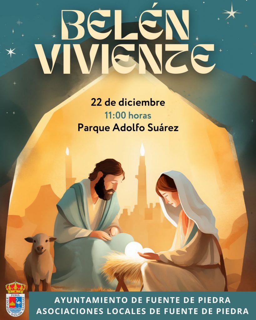 El domingo, las celebraciones se trasladarán al Parque Adolfo Suárez, donde desde las 12:00 horas un belén viviente recreará escenas del Nacimiento con la participación de vecinos del municipio. La jornada incluirá una misa navideña a las 12:30 horas y actuaciones de grupos y artistas locales como la Centuria Romana Misericordias y Dolores, la Escuela de Música “Dar la Nota”, el Coro Nuestra Señora de las Virtudes, el Grupo de Baile Eli Castillo y otros talentos de Fuente de Piedra.
