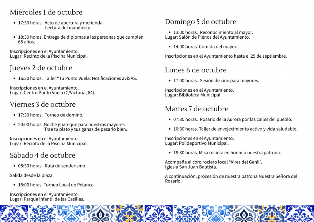 Del 1 al 7 de octubre, Cuevas Bajas celebrará su tradicional Semana del Mayor, con una programación que incluye actividades deportivas, culturales y de ocio para rendir homenaje a quienes representan la memoria viva de la comunidad.